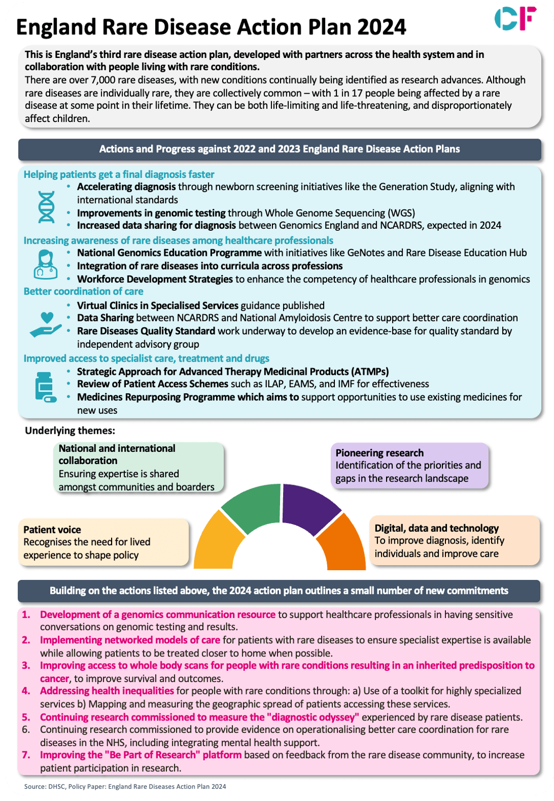 On 29th February 2024, the Department of Health and Social Care published its England Rare Diseases Action plan for 2024.